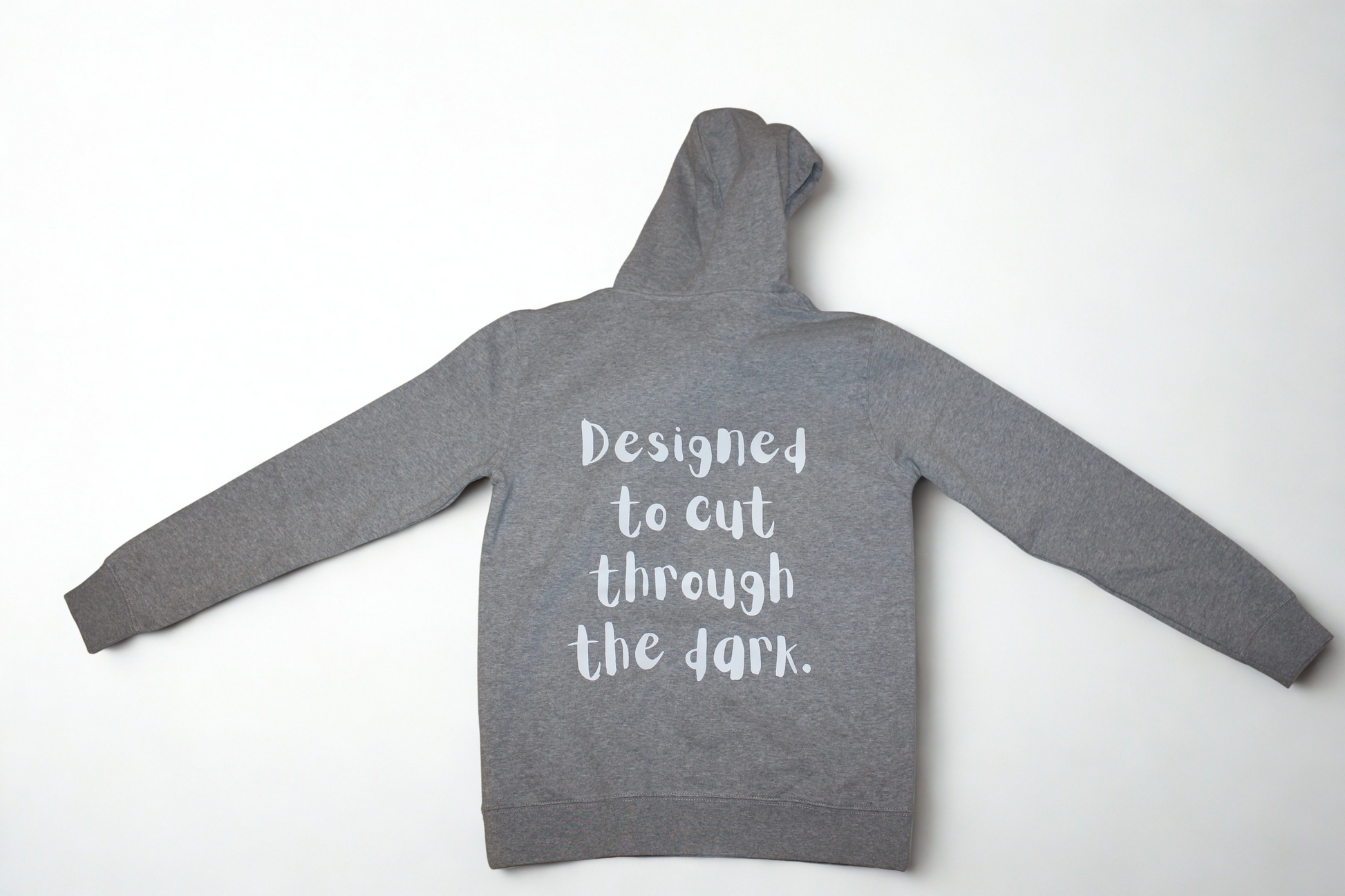 On the front, the bold LUMÉ est. 2025 print speaks to the brand’s origin and presence. On the back, the message “Designed to cut through the dark.” reminds you that this piece is more than clothing – it’s purpose stitched into streetwear.